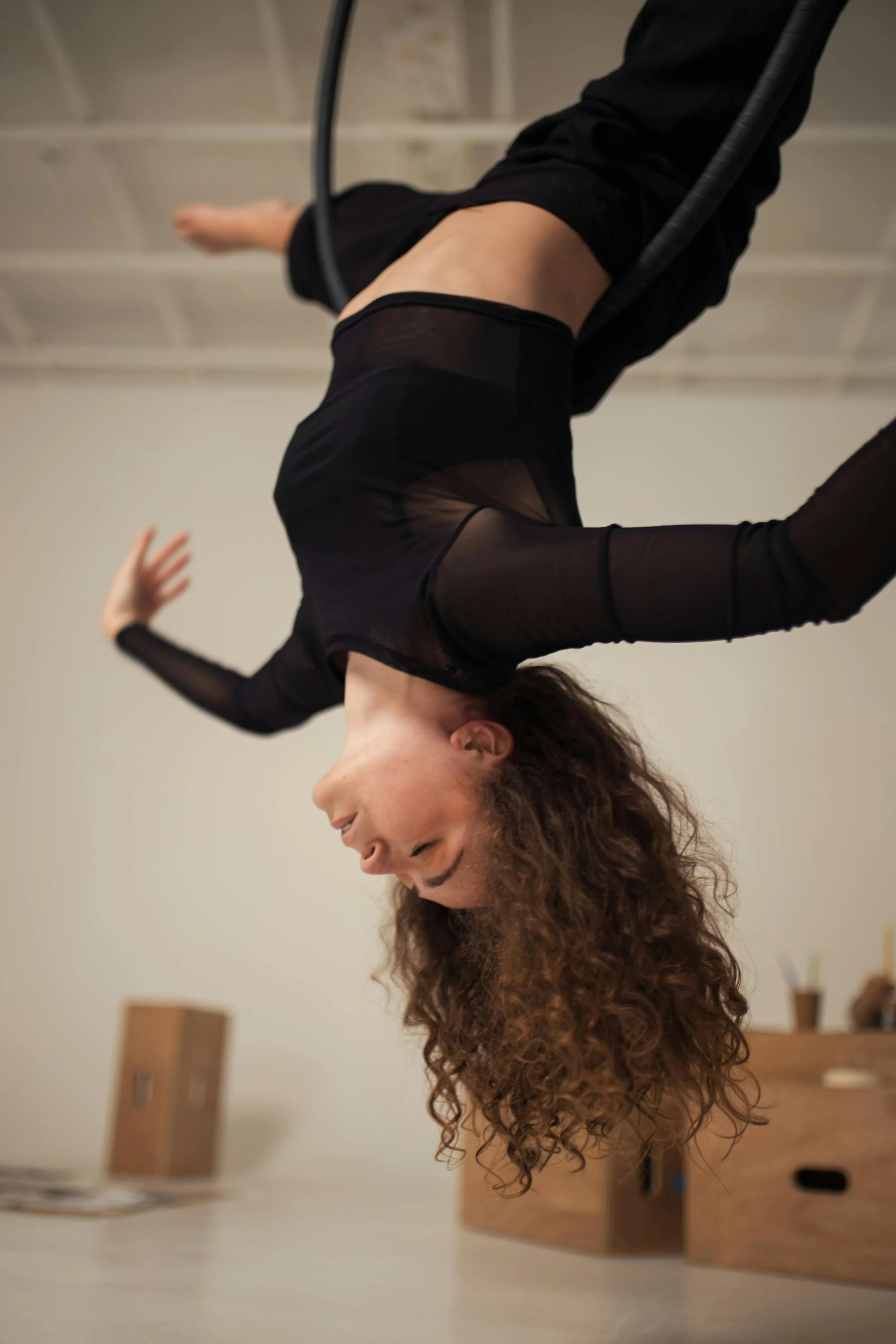 Jackie Guscott MacAllen has been training aerial hoop since 2022. Like most aerial students, she fell hard for the discipline — the community, the progression, the feeling of being completely absorbed in something physically and mentally demanding.
